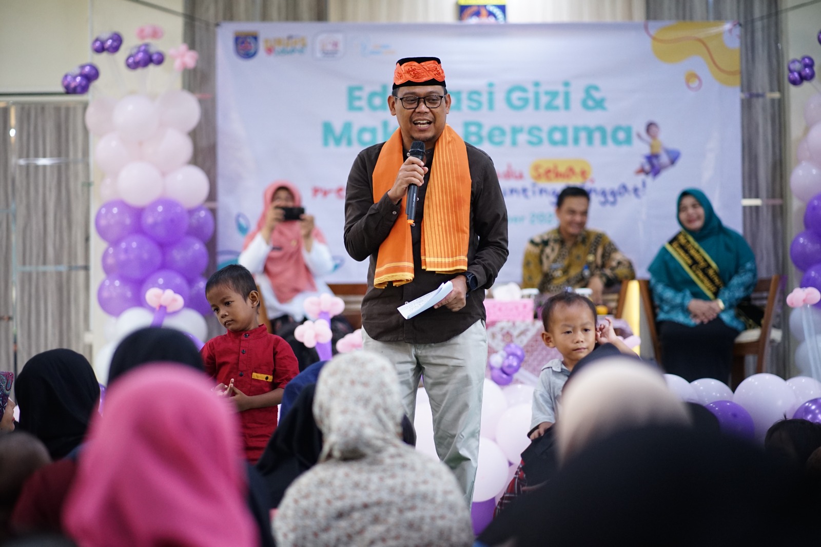 Wakil Wali Kota Depok Imam Budi Hartono saat menghadiri acara Edukasi Gizi dan Makan Bersama Melalui PMT Lokal, bertempat di Aula Kantor Kecamatan Cimanggis, Kamis (16/11/2023).