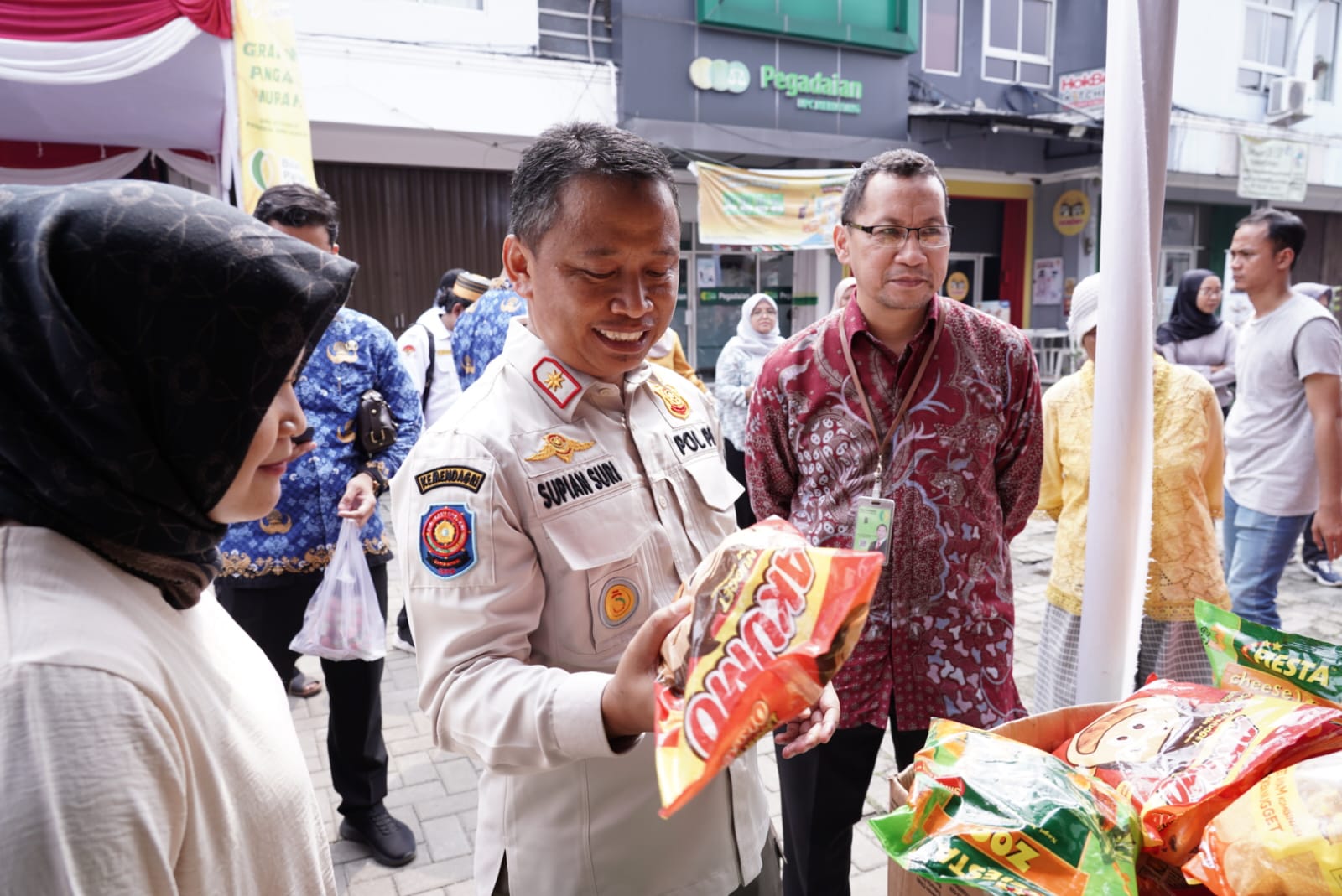 Sekretaris Daerah (Sekda) Kota Depok, Supian Suri menghadiri kegiatan Gerakan Pangan Murah yang digelar Badan Pangan Nasional (Bapanas) berkolaborasi dengan Karang Taruna Kelurahan Meruyung, Kecamatan Limo.