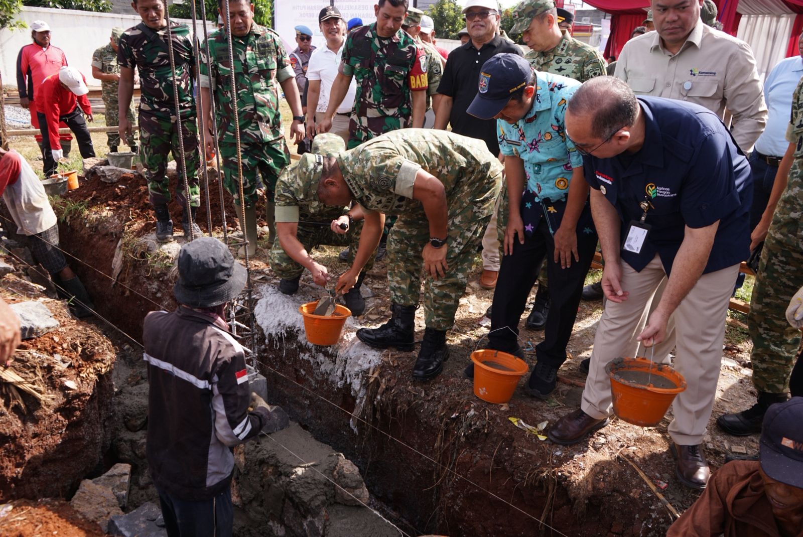 Wakil Wali Kota Depok, Chandra Rahmansyah mendampingi Wakil Pangilama TNI, Jenderal Tandyo Budi Revita meninjau langsung pembangunan Koperasi Desa Kelurahan Merah Putih (Koprasi DKMP) Grogol yang berlokasi di Jalan Rawa Kalong RT 003 RW 009, Kelurahan Grogol, Kecamatan Limo, Kota Depok, Jumat (07/11/2025).
